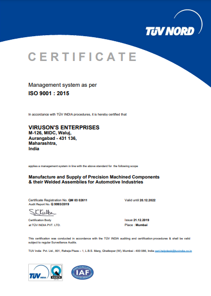 Welcome to Virusons Enterprises An industry leader in manufacturing of front suspension parts and precision parts. Virusons Enterprises established in 2007 with the Aim of Customer Satisfaction. Being country's leading OEM supplier we maintain high standards to meet our aim. Virusons now emerged as one of the leading suppliers and manufacturers of automotive front suspension parts and precision parts for Two wheeler motor-bikes, three-wheelers, scooters, heavy trucks, trailers, buses, light Commercial cars vehicles, cars and pickup trucks etc.